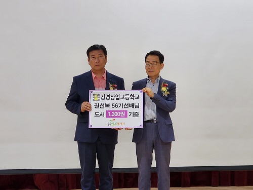 도서출판 행복에너지 권선복 대표는 제56회 졸업생으로, 학생들의 인문·예술 소양 함양을 위해 1,300권의 도서를 후배들에게 제공했다.