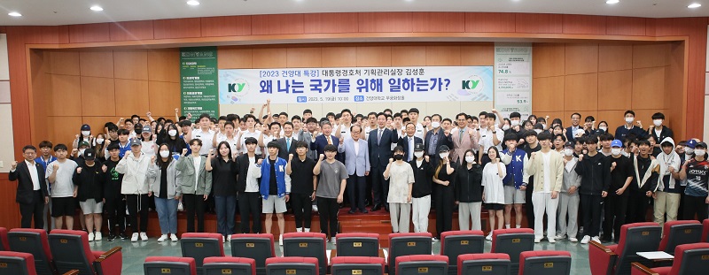 건양대학교(총장 김용하)는 19일 오전 창의융합캠퍼스 명곡정보관 무궁화장홀에서 대통령경호처 김성훈 기획관리실장을 초청해 군사경찰계열 재학생을 대상으로 특강을 진행했다고 밝혔다.