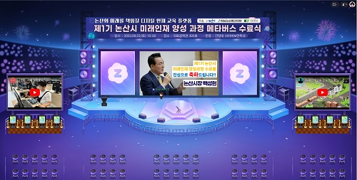 논산시 백성현 시장, 건양대 최임수 부총장과 건양대 및 시 관계자, 교육을 받은 학생들이 참석한 가운데 열린 이날 1기 수료식은 학생들이 참여하는 방식의 메타버스 수료식도 동시에 진행됐다.