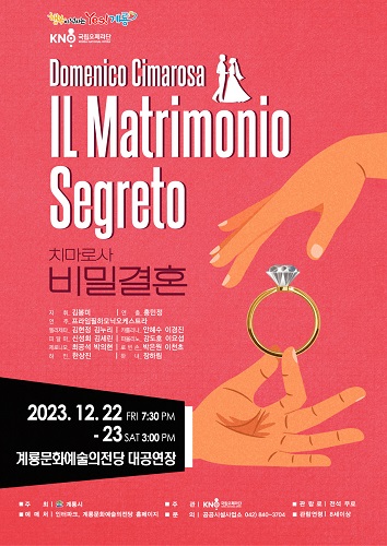 계룡시(시장 이응우)가 오는 22일과 23일 이틀에 걸쳐 계룡문화예술의전당 대공연장에서 국립오페라단의 치마로사 ‘비밀결혼’ 초청 공연을 개최한다고 밝혔다.