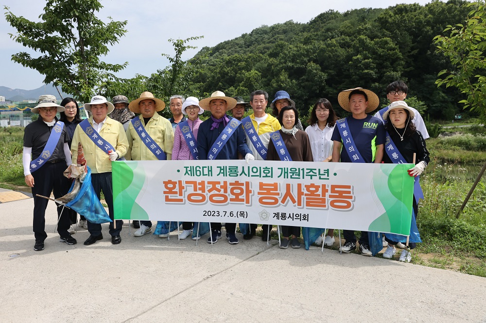 계룡시의회(의장 김범규)가 지난 6일(목) 개원 1주년을 기념하여 계룡시 환경 정화활동에 나섰다.
