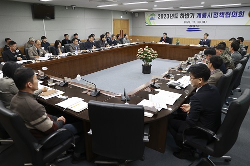 계룡시(시장 이응우)는 30일 시청 상황실에서 ‘2023년 하반기 계룡시정책협의회’를 개최했다고 밝혔다.
