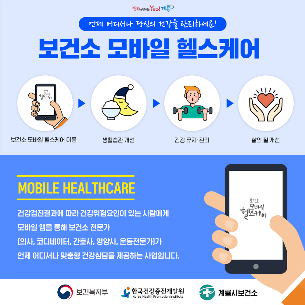 계룡시(시장 이응우)가 스마트폰을 활용한 모바일 건강관리(헬스케어) 운영에 나선다.