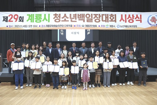 계룡시, 청소년 백일장 시상식 개최 지역계룡 2023년 11월 6일 <계룡시 청소년 백일장 시상식 모습> 계룡시(시장 이응우)는 지난 4일 계룡문화예술의전당에서 계룡시 청소년 백일장 시상식을 가졌다고 전했다. 산문부 전윤아(두마초 4년) 학생과 운문부 김주아(계룡고 1년) 학생이 장원의 영예를 안은 가운데 이응우 시장은 “계룡시 청소년들이 다양한 경험을 통해 본인의 재능을 발견하고 발휘할 수 있도록 지원을 아끼지 않겠다”고 말했다. 답변을 남겨주세요 답글 취소 귀하의 의견을 입력하십시오! 여기에 이름을 입력하십시오. 잘못된 이메일 주소를 입력하셨습니다! 여기에 이메일 주소를 입력하십시오. 의견을 작성하려면 저장해주세요. Δ 최근기사 논산 “논산의 미래, 반드시... inbctv - 2026년 3월 26일 논산 “안전은 타협 없다”…... inbctv - 2026년 3월 25일 논산 논산딸기, 산업으로 뛴다…... inbctv - 2026년 3월 25일 논산 논산시, 대상포진 무료접종…... inbctv - 2026년 3월 25일 인기기사 계룡 행복이 넘치는 Yes!... inbctv - 2020년 11월 9일 논산 시민 모두의 평생학습을... inbctv - 2022년 2월 3일 계룡 계룡시, 제18회 국방일보... inbctv - 2022년 9월 27일 계룡 계룡시 엄사면 도자기... inbctv - 2022년 5월 27일 배너 논산 육군병장 논산시 농산물 브랜드 0 뿌리가 든든한 금융 MG 놀뫼새마을금고 0 충청남도논산계룡교육지원청 0 관련뉴스 논산 “방심은 곧 재난…산불, 이제는 ‘개인의 책임’이다”논산시장 경고…“예방 실패는 곧 피해로 직결된다 inbctv - 2026년 3월 26일 논산 “논산의 미래, 반드시 결과로 증명하겠습니다” inbctv - 2026년 3월 26일 논산 “안전은 타협 없다”… 논산딸기축제, 현장 중심 안전관리 총력 inbctv - 2026년 3월 25일 논산 논산딸기, 산업으로 뛴다… 10개 기업과 손잡고 ‘K-딸기’ 세계화 inbctv - 2026년 3월 25일