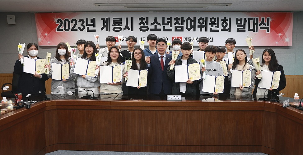 계룡시(시장 이응우)는 지난 15일 시청 상황실에서 ‘2023년 계룡시 청소년참여위원회’ 발대식을 열었다고 밝혔다.