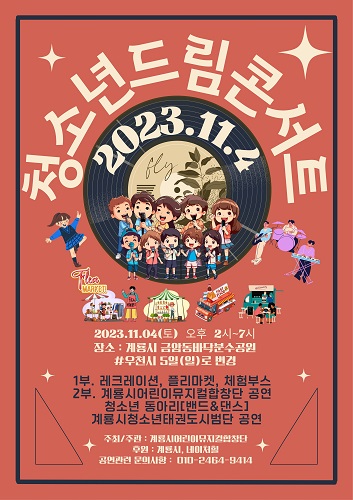 계룡시(시장 이응우)는 오는 11월 4일 오후 2시부터 7시까지 관내 금암동 분수광장에서 ‘2023 계룡시 청소년 드림콘서트’를 개최한다고 밝혔다.