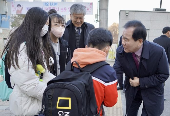 김지철 교육감, 3년 만에 웃음 되찾은 등교 현장 방문새학기 임하는 학생들 반갑게 맞아…충남교육청, 이달 16일까지 ‘학교 방역 특별 지원 기간’운영