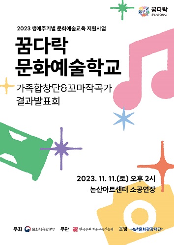 논산문화관광재단(대표이사 지진호)이 오는 11일 논산아트센터 소공연장에서 ‘2023 꿈다락 문화예술학교’ 결과발표회를 개최한다.