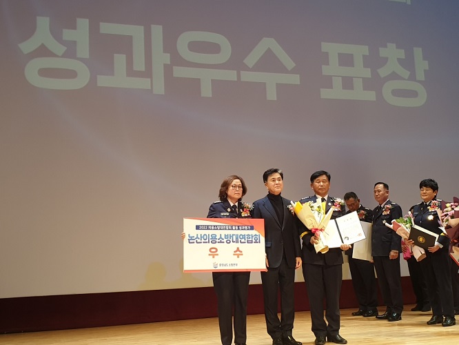 논산소방서(서장 이희선)는 논산의용소방대 연합회가 2022년도 충남 전체 16개 의용소방대 연합회에 대한 운영실적 평가결과 ‘우수’를 수상했다고 밝혔다.