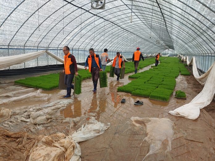 논산소방서(서장 강기원)는 채운면남성의용소방대(대장 이성구)가 지난 28일 ~ 29일 내린 비로 인해 침수된 육묘장 피해 복구 작업에 나섰다고 밝혔다.