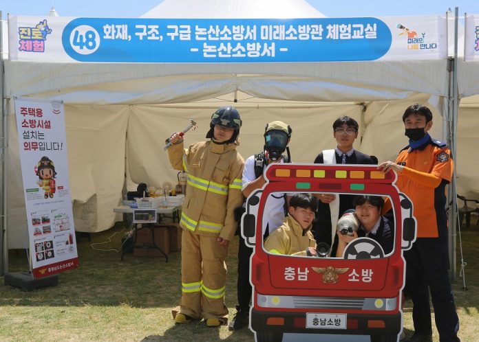 논산소방서(서장 강기원)는 지난 25일, 26일 이틀 간 논산시민공원에서 열린 제9회 논산시청소년진로박람회에서 ‘미래소방관 체험부스’를 운영했다고 밝혔다.
