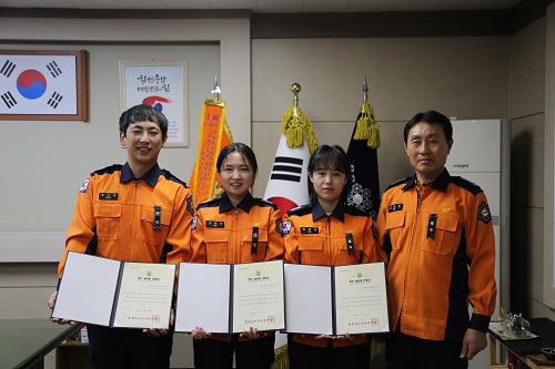 이날 하트세이버 인증서를 받은 구급대원은 정오현 소방장, 이빛나, 김령경 소방교이다.