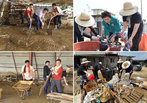 논산시의회사무국 직원들도 수해 복구 활동에 함께 힘을 보탰다. 김민영 의회사무국장을 포함한 사무국 직원들은 집중호우 피해를 입은 현장을 방문해 각종 집기 정리 및 쓰레기 수거, 폐기물·토사·부유물 제거 등 복구 작업에 동참하며 구슬땀을 흘렸다.