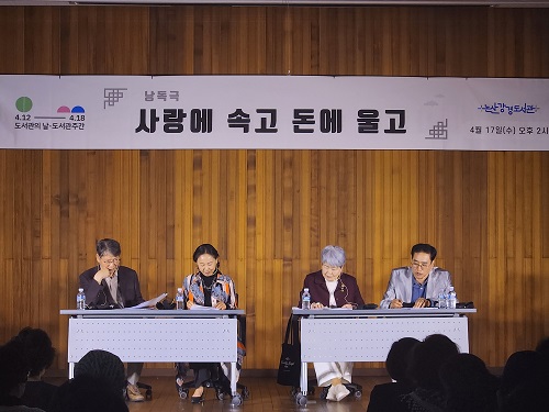 전 세대를 아우르는 도서관 주간 프로그램은 봄을 맞이해 우리의 고전소설인 ‘홍도야 울지마라’를 각색한 낭독극 ‘사랑에 속고 돈에 울고’공연을 기획했다. 이번 기획은 60대 이상 어르신층을 겨냥한 프로그램으로 기생 홍도를 주인공으로 내세워, 비극적 운명을 묘사한 신파극을 공연했다.