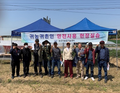 논산시(시장 백성현)가 지난 19일 귀농ㆍ귀촌인을 대상으로 ‘농업기계 안전 사용 현장 실습 교육’을 진행했다.