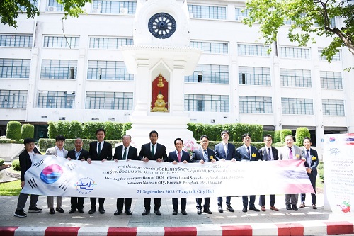 논산시와 방콕시는 21일 방콕시청에서‘농식품 해외박람회 공동개최에 관한 협약식’을 갖고, 양 도시가 협약의 결실을 위해 지속 공조할 것을 약속했다. 이날 협약식에는 백성현 논산시장과 찻찻 싯티판 방콕시장을 비롯 현지 유통업계 관계자들이 함께 자리했다.
