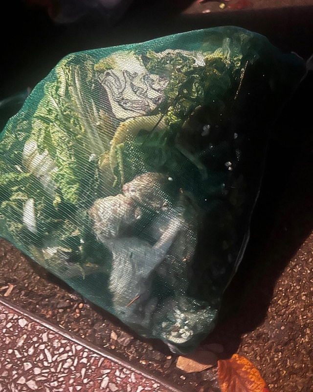 탯줄도 떼지 않은 새끼 고양이 배추망에 버려진 채 발견