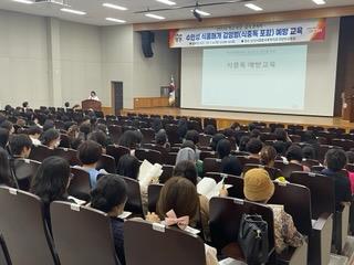 논산시(시장 백성현)가 지난 6일 오후 종합사회복지관에서 학교 내 보건ㆍ급식 관계자 180여 명을 대상으로 여름철 수인성ㆍ식품매개 감염병 예방교육을 실시했다.