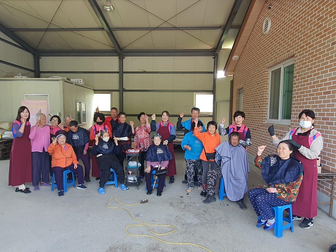 논산시 양촌면 생활개선회(회장 송춘홍) 회원들이 일일 미용사로 나섰다.