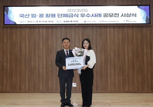 이번 공모전은 국산 밀ㆍ콩 소비 기반을 두텁게하는 것은 물론 유통 활성화를 통한 농가 소득 증대를 위해 치러진 것으로, 농림축산식품부와 농림수산식품교육문화정보원이 공동 주관했다.