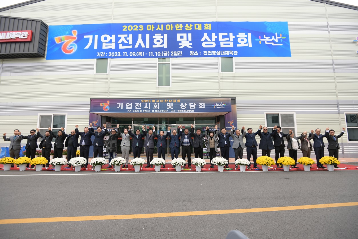 역대 최초로 국내 지자체에서 개최되어 관심을 모은 ‘2023 아시아한상대회’가 논산에서의 사흘간 일정을 마무리했다. 8일 오후 논산아트센터에서 개회를 알린 뒤 9일부터 이틀간 논산 전천후실내체육관에서 치러진 이번 한상대회는 국내외 기업인ㆍ바이어 300여 명의 발걸음 속에 성황을 이뤘다.