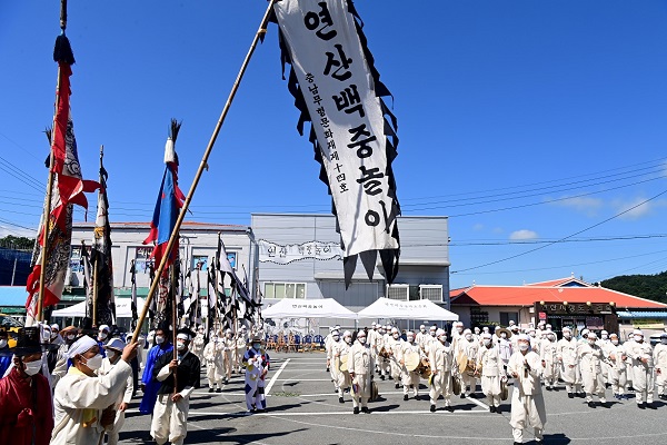 논산시 연산면에서 진행되는 연산백중놀이는 조선 성종 대에 시작된 일종의‘민속판 공동체 문화 콘텐츠’라 할 수 있다. 매년 음력 7월 15일 백중날에 연산면 일원 27개 마을의 두레꾼들은 한데 모여 크게 난장을 트고 대동놀이를 즐기며 정을 나누는 속에 공동체 의식을 고취했다고 전해진다. 농사가 끝나가는 백중날을 맞아 머슴들이 잔치를 벌여 쉬고 놀던 문화가 ‘온고지신(溫故知新)’의 가치 속에 현대로 계승되어 오고 있는 셈이다.