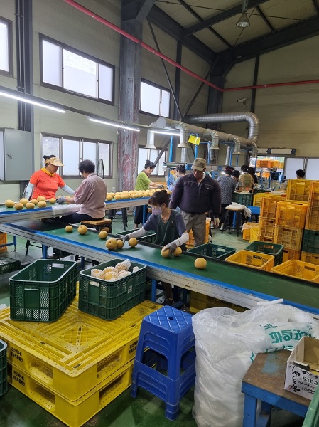 시 관계자에 따르면 예년보다 일찍 수확이 시작된 조생종 신화배 40톤(3억 원 상당)이 지난주부터 수출 컨테이너에 실리는 중이다.