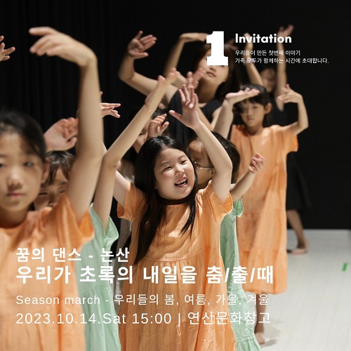 오는 14일 열리는 연산대추문화축제장 거리공연은 <우리들의 봄, 여름, 가을, 겨울>이라는 제목 아래 진행된다. 꿈의 댄스팀 ‘논산’ 어린이 무용단원 25명이 각자 기억하고 있는 사계(四季)의 상징적 이미지를 무용으로 재해석한 계절 행진곡을 선보일 예정이다.