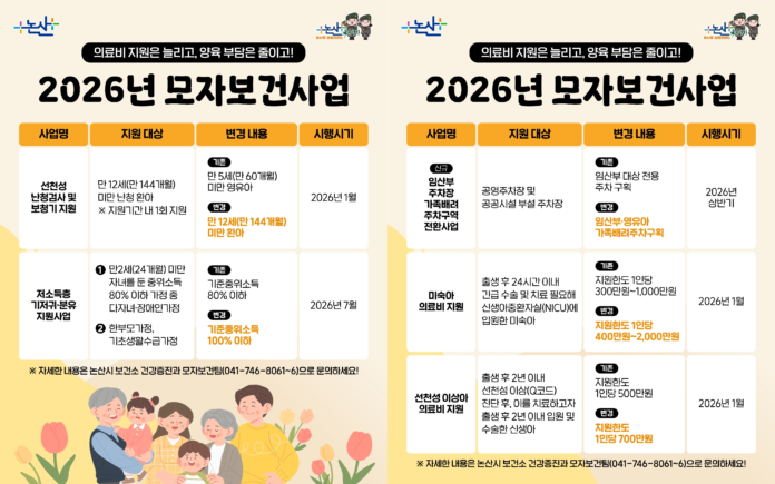 논산시가 임산부와 영유아 가정을 위한 모자보건 지원을 확대하며 출산·양육 환경 개선에 나섰다.