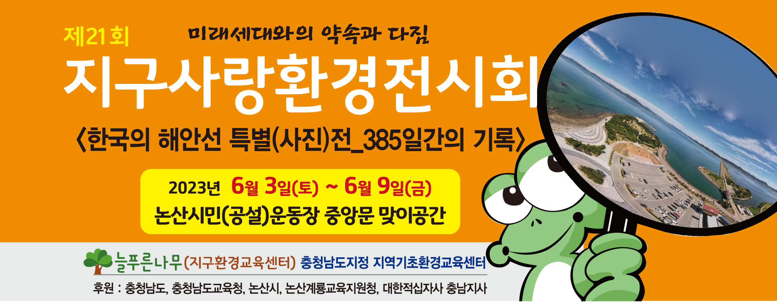 공익단체 늘푸른나무(지구환경교육센터/ 대표 권선학)에서는 환경의 날(6월 5일)과 환경주간을 맞이하여 <제21회 지구사랑환경전시회 –한국의 해안선 특별사진전>을 개최한다.
