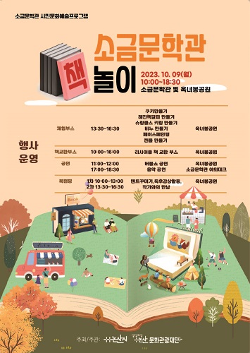논산문화관광재단(대표이사 지진호)이 오는 9일 한글날을 맞아 가족 단위 시민이 즐길 수 있는 ‘소금문학관 책 놀이’행사를 개최한다.