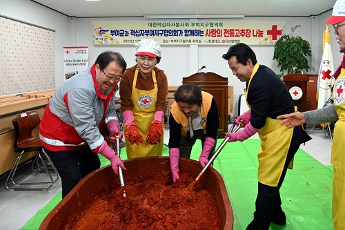대한적십자사봉사회 부여지구협의회(회장 백영애)는 겨울철을 앞두고 지역의 취약계층, 복지사각지대에 있는 이웃들과 따뜻한 정을 나누기 위해 지난 12일 ‘사랑의 고추장 나누기’ 행사를 가졌다.