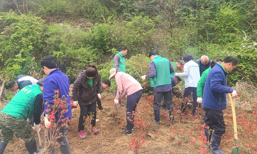 새마을지회 회원과 마을 주민 등 50여 명이 참여한 가운데 진행된 이번 나무심기 행사는 마을환경 개선사업의 일환으로 마을 자연환경 보호 및 탄소중립 녹색성장을 실천하기 위해 열렸다.