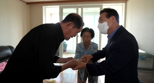백성현 논산시장이 6일 민족 고유 명절인 추석을 앞두고, 6·25참전유공자 김응하 옹(90세)과 이재철 옹(89세)의 자택을 방문해 대한민국을 지켜낸 숭고한 희생과 공로에 깊은 감사의 인사를 전했다.
