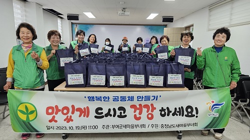 부여군새마을부녀회(회장 이창순)는 지난 19일 새마을운동부여군지회 회의실에서 ‘행복한 공동체 만들기’ 운동으로 결연 어르신께 반찬 키트를 전달하는 나눔 행사를 진행했다.