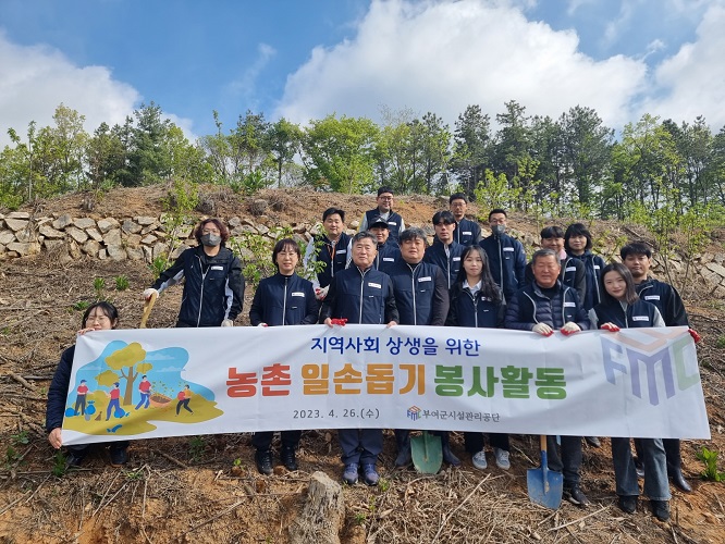 부여군시설관리공단은 지난 26일 영농철을 맞아 부여군 옥산면 밤 농가에 방문해 공단 임직원 20여명이 참여한 가운데 농촌일손 돕기 봉사활동을 진행했다.
