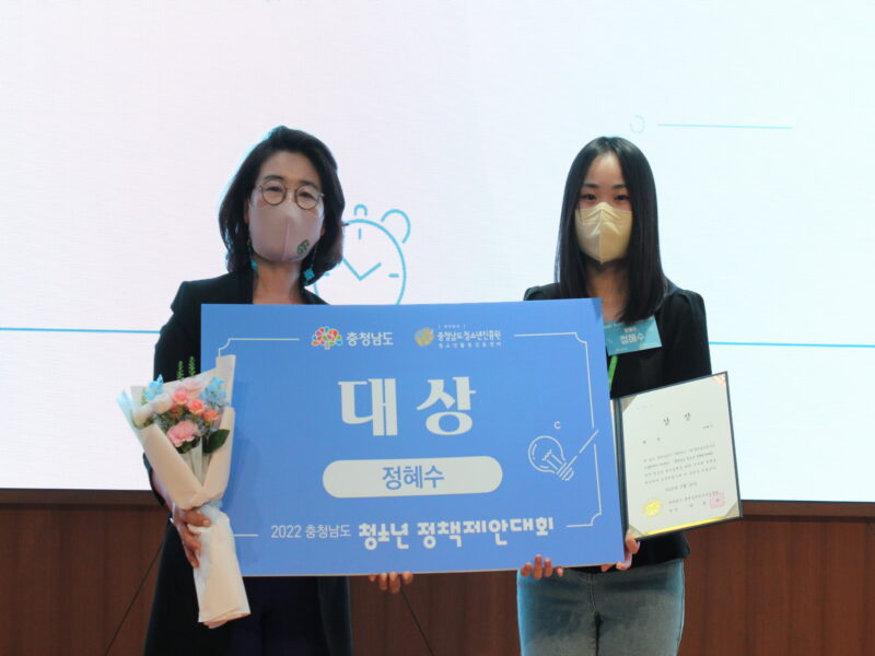 부여군시설관리공단(이사장 추정호) 학교밖청소년지원센터(이하 꿈드림)는 지난 20일 충남도가 주최하고 충청남도청소년진흥원에서 주관한 ‘2022 충청남도 청소년 정책제안대회’에서 꿈드림 소속 정혜수 청소년이 대상을 받았다고 밝혔다.