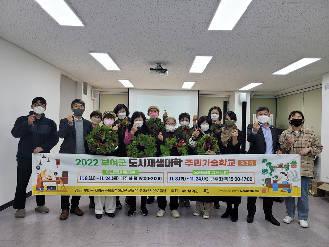 부여군 지역공동체활성화재단 도시재생지원센터가 최근 ‘부여군 도시재생대학 주민기술학교 제3기’ 운영을 마치고 수료식을 진행했다.
