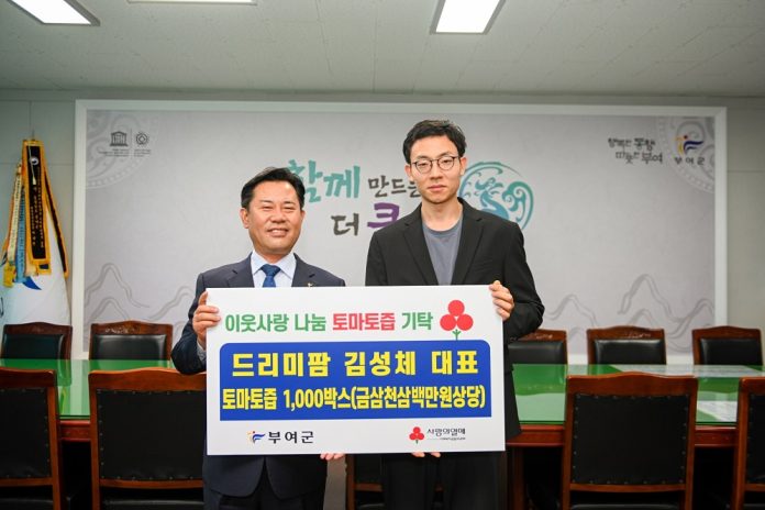 부여군, 드리미팜 ‘사랑의 토마토즙’ 기탁