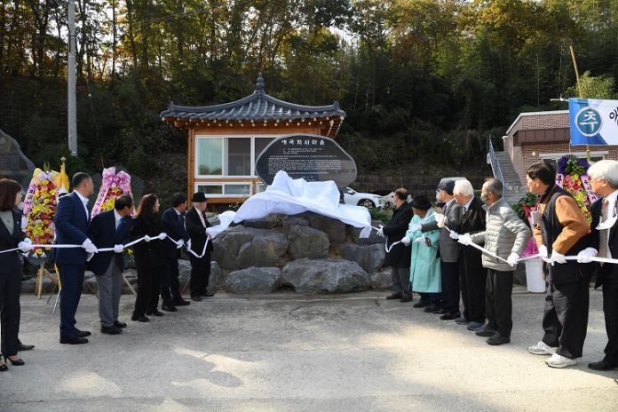 부여군(군수 박정현)이 지난 8일 부여읍 중정2리 마을에서 유족과 마을 주민이 참석한 가운데 류인성 애국지사 마을 표지석을 제막했다.