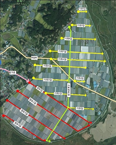 한편, 군은 이번에 추진한 농로 및 비닐하우스 도로명주소 부여사업에 필요한 사업비를 행정안전부에서 주관한 지자체 혁신성과 확산지원사업 공모를 통해 확보한 바 있다.