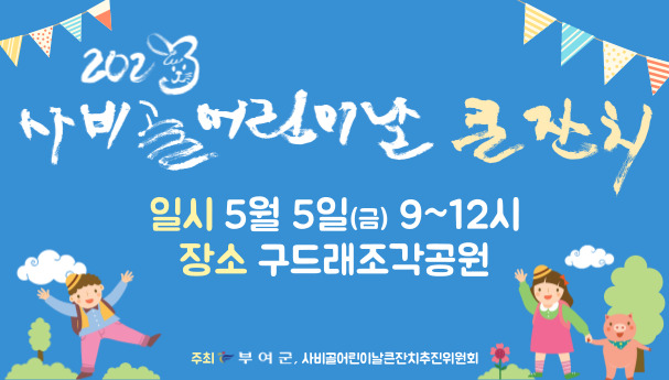 부여군(군수 박정현)이 오는 5월 5일 제101회 어린이날을 맞아 구드래 조각공원 일원에서 ‘사비골 어린이날 큰잔치’를 개최한다.