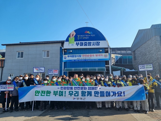 부여군(군수 박정현)은 군민의 안전의식 고취를 위해 지난 27일 부여 중앙시장 일대에서 전통시장 상인과 군민들을 대상으로 민·관 합동 동절기 안전사고 예방 캠페인을 전개했다.