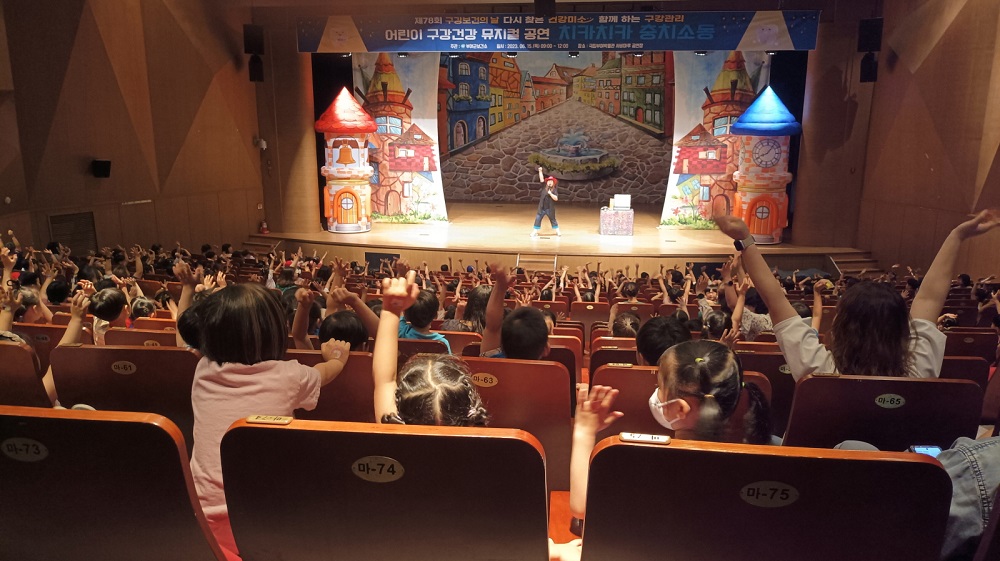 지난 15일 부여박물관 사비마루 공연장에서는 관내 21개소 유치원 및 어린이집 아동 430여명이 참석한 가운데 어린이 구강건강 뮤지컬「치카치카 충치소동」을 상연하여 뜨거운 호응을 얻었다.