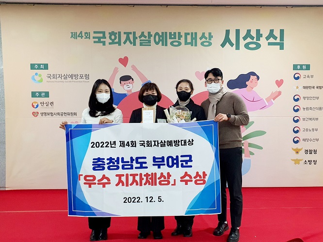 부여군, 자살예방사업 평가 ‘전국 2위’ -부여군,‘제4회 국회자살예방대상’우수 지자체 수상