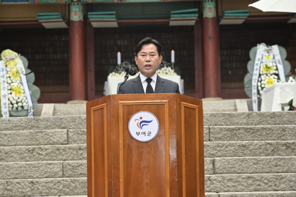 박정현 부여군수는 추념사에서 “오늘 우리가 자유와 평화, 번영을 누리며 행복하게 살 수 있는 것은 선열들의 고귀한 희생 덕분이며 그 숭고한 희생 위에서 오늘의 우리 국민은 대한민국의 주인공이 되었다”며 “우리에게 애국이라는 위대한 유산을 물려주신 호국영령들께 깊은 존경을 바치면서 영원한 안식을 기원한다”고 밝혔다.