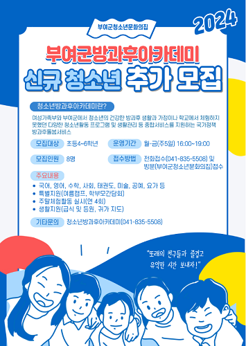 부여군 청소년방과후아카데미 참여 청소년 추가모집