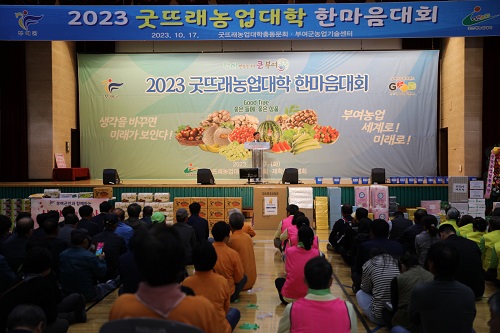 부여군(군수 박정현)은 17일 부여문화원 실내체육관에서 굿뜨래농업대학 한마음대회를 개최했다.