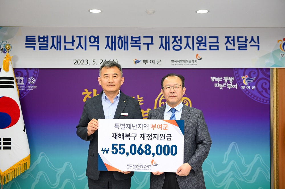 소명수 부여부군수는 “자치단체 등 지방 재정의 발전을 위해 항상 힘써주시는 한국지방재정공제회 관계자분께 감사드린다”며 “재난으로 피해를 입은 주민들에게 도움이 될 수 있도록 전달받은 재정지원금을 재해복구 재원 등으로 사용하겠다”고 밝혔다.
