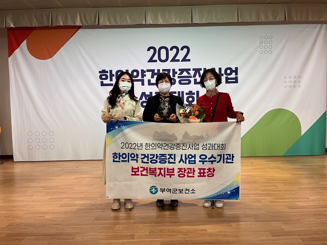 부여군(군수 박정현)이 지역사회 한의약 건강증진사업 우수기관으로 선정돼 보건복지부 장관상을 받았다.